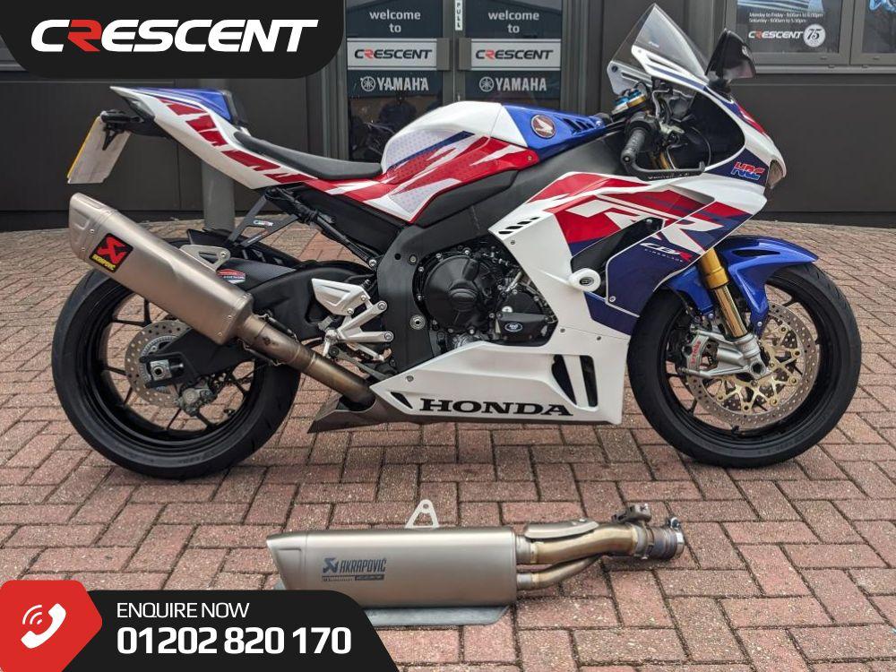 We are proud to offer this Crescent supplied & serviced 2022 Honda Fireblade SP 30th Anniversary with 7663 miles. This 2 owner machine benefits from recent new tyres & 2 service stamps including a fresh service for the next lucky owner. Extras include AKRAPOVIC RACE SILENCER (STD ANNIVERSARY PIPE ALSO INCLUDED) | GB RACING LEVER GUARD | R&G FRAME BOBBINS | R&G RADIATOR GUARD | PUIG SCREEN | STOMP GRIPS | R&G ENGINE CASE COVERS | R&G TAIL TIDY | GILLES TANK CAP | REAR HUGGER & CHAIN GUARD.