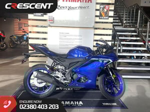 Crescent welcomes this 2025 Tech Black YZF-R125, featuring race-developed Supersport geometry, the Deltabox chassis is equipped with state-of-the-art 41mm KYB upside-down front forks and link-type rear suspension for super-agile handling. The footrest/seat/handlebar layout gives a sporty riding position for optimum control – and smartphone-connected 5-inch TFT instruments keep you informed – and in touch. And equipped with a powerful central LED headlight and dual LED position lights and M-shaped nose, its aggressive new face oozes pure R-Series DNA.