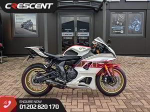 We are proud to offer this Crescent supplied & serviced 2022 Yamaha R7 finished in Icon Blue with just 7529 miles. This 2 owner bike benefits from a recent front tyre & 3 service stamps including a fresh service for the next lucky owner. The list of extras include AKRAPOVIC EXHAUST SYSTEM | YAMAHA QUICKSHIFTER | GILLES REARSETS | GILLES LEVERS | YAMAHA RADIATOR GUARD | YAMAHA TINTED SCREEN | GILLES LEVER GUARD | R&G FRAME BOBBINS | GB RACING ENGINE COVERS | YAMAHA TANK PADS | CRESCENT GYTR FINAL DRIVE KIT | MG BIKETECH TAIL TIDY | PASSENGER SEAT COWL | OPEN TOP YOKE NUT | GB RACING PADDOCK BOBBINS | GILLES CHAIN GUARD.